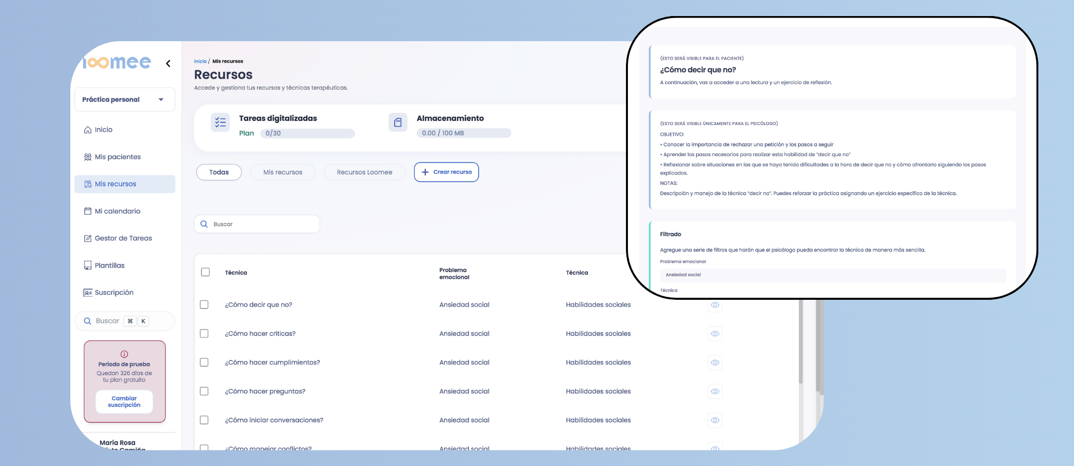 Con “Mis Recursos” tu consulta —presencial u online— se vuelve más ordenada, más eficiente y más adaptada a cada persona.